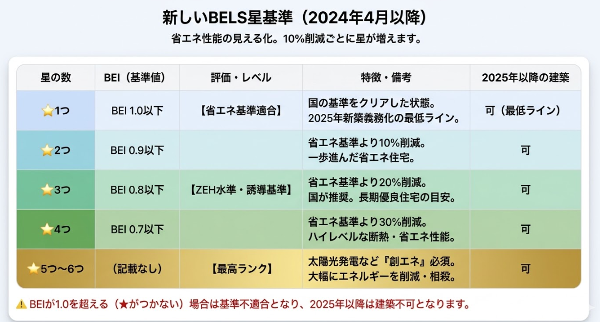 2025年からは、これを満たしていない建物(☆0)は建築許可が下りなくなりました。